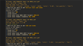 The size of the (V2) database at time of writing is 4,430 issues from 52 different titles, full-text indexed and searchable: a total of 629,217 pages. So far, these lean heavily toward English-language PC and multiplatform coverage and represent only a small fraction of my hoard of digital magazines; the database continues to grow as more publications are ingested.